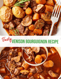 This Venison Bourguignon Recipe is a rustic and flavorful dish that combines tender pieces of venison with classic French elements, inspired by the French beef bourguignon. The result is a hearty and savory deer stew that with deep earthy flavors!