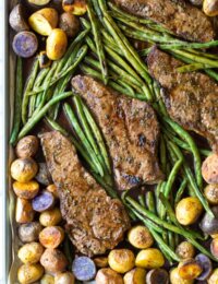 Balsamic Oven Baked Steak (Sheet Pan Dinner)