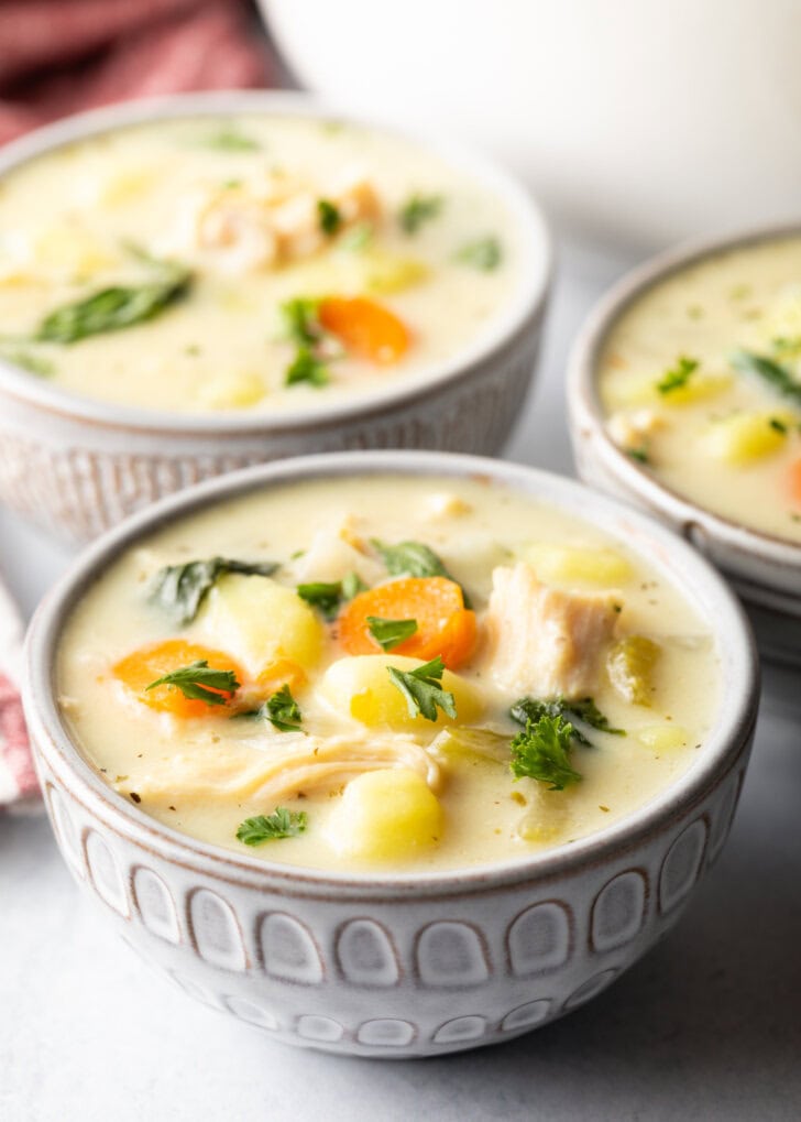 - Without cream – You can substitute half and half with your favorite plant-based alternative. Or if you prefer, you can thicken the soup by subbing cream with 1/2 cup of broth + 1 tablespoon of cornstarch. This will thicken the soup, but note that the taste and consistency will be quite different from the original Olive Garden chicken gnocchi soup.