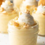 - Once the pudding is cold scoop into serving cups and serve cold. Serve as is, or garnish with whipped cream and vanilla wafers.
