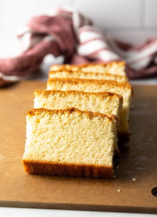 This jiggly sponge cake is similar to pound cake, yet with a lighter fluffy texture. It is perfect to serve with hot tea or coffee, or to use as the base of a cake, ice cream, and fruit stack.