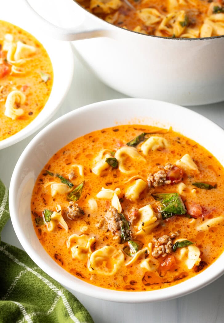 - Vegetarian – Skip the sausage for a meatless tortellini soup recipe.