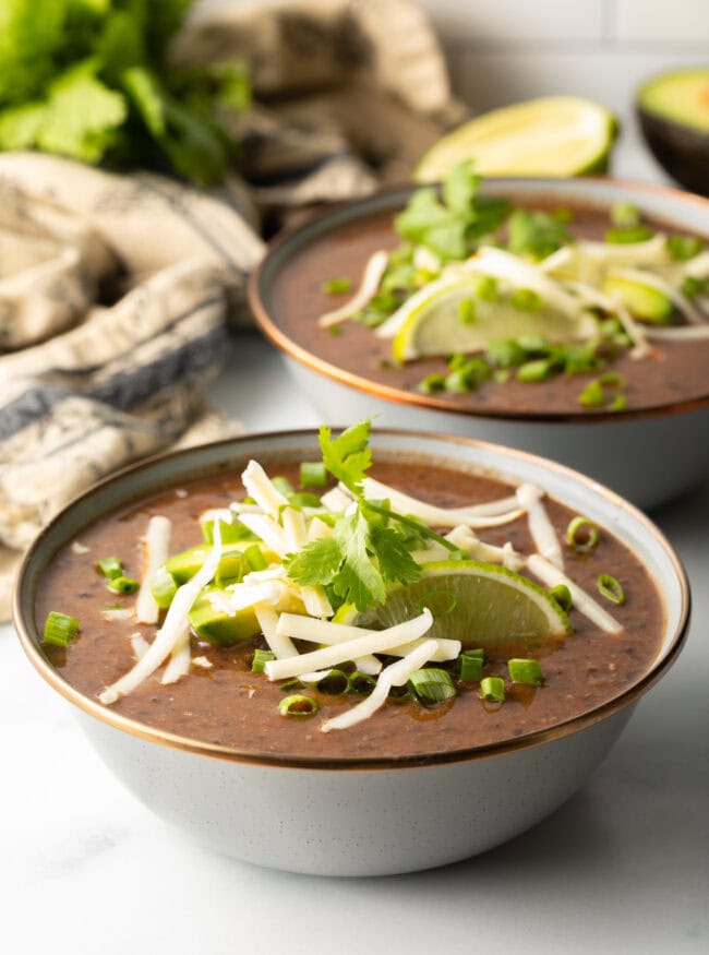 Slow Cooker Black Bean Soup Recipe – Light and healthy, yet bursting with flavor, this black bean soup recipe is an instant family favorite youโll make again and again!