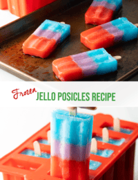To make this recipe you’ll also need a 10 cavity popsicle mold and 10 popsicle sticks. You can also make these frozen jello treats in small plastic or paper cups and individually freeze them!